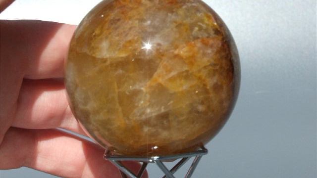 Шар из кварца с лимонитом диаметр 65 мм вес 390 грамм из Мадагаскара