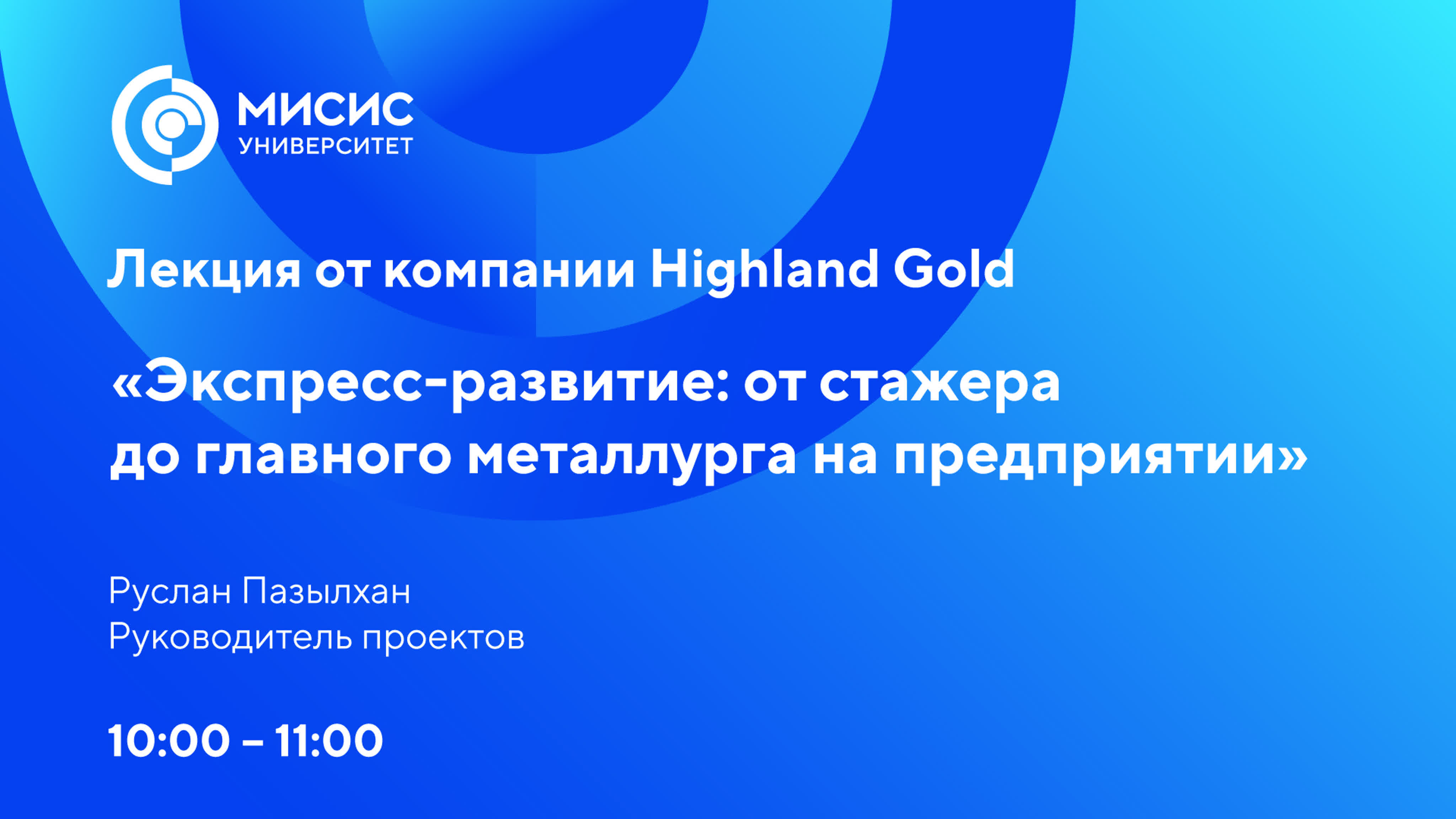 Лекция Highland Gold «Экспресс-развитие: от стажера до главного металлурга на предприятии»