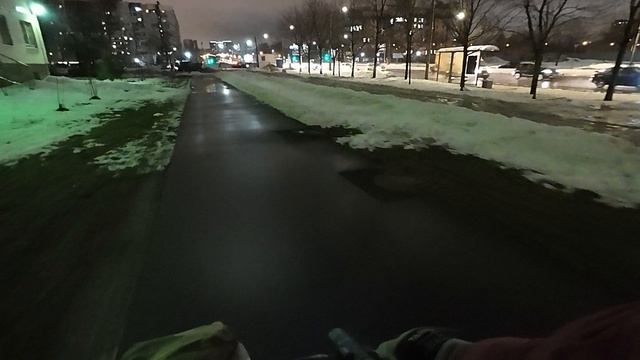 By bike in winter.