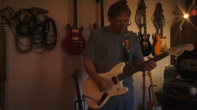 Had some old pups in a drawer - Ibanez Super 70 Neck, and a Carvin M22 Bridge. Why not, right? Playing into a clean amp patch on a Vox Valvetronix VT80, through a Joyo American Sound, occasionally pushed by a Sweet Baby Overdrive and an EH Soul Food. Bedroom loud. 24" scale neck makes you go faster than you want all the time. Great guitar punching hard way above its weight. Fun fun fun.