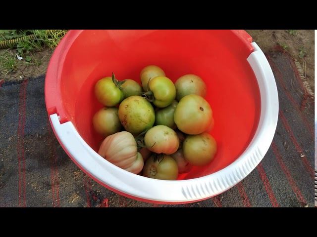 Друзья решила собрать зелёные томаты в открытом грунте.