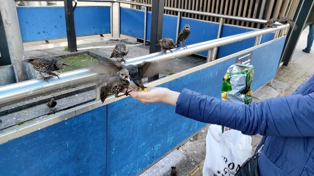 Голодные птички выпрашивают еду и кормятся прям с рук.Висят таблички что кормить нельзя,но как пройти мимо когда так просят.К сожалению кроме чипсиков ни чего не было.Пишите в комментах название птиц!Когда чипсы закончились птичка клюнула за палец)))Стоит ли так подкармливать птичек?