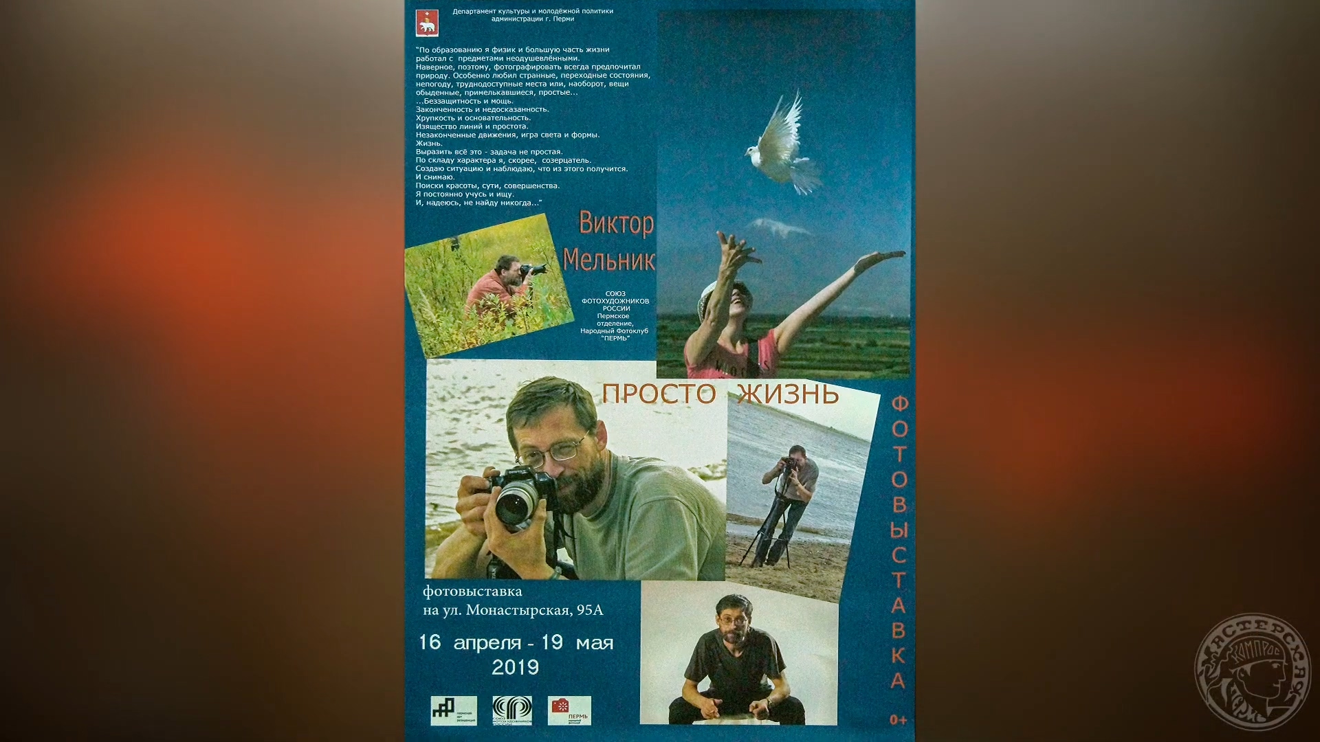 #ВикторМельник #Фотовыставка#Артрезиденция #ЮрийЛапшин #Пермскаяхудожественнаяфотография #Пермь #НародныйфотоклубПермь #пермская_фотография #видеомонтажназаказ #художественнаяфотография 16 апреля 2019 года в Пермской Арт-резиденции состоялось открытие фотовыставки работ Виктора Мельника под названием "Просто жизнь". На экспозиция представлено около 100 ранее не экспонированных фотографий автора. Настоящая фотография не требует пояснений, она говорит сама за себя. Таким редким качеством обладают работы Виктора Мельника: это не иллюстрации, не отчёты о поездках, а личное отношение к миру, к жизни, к людям. На открытии фотовыставки выступали: Юрий Лапшин, Александр Ширинкин. - Выбирая из огромного идеально систематизированного архива Виктора Мельника коллекцию для выставки, мы хотели показать зрителю и те работы автора, которые он выставлял, но мы увидели большой интересный пласт работ, которые не были на выставках. И этот факт очень поразил и взбудоражил! Как?! Мельник не показывал черно-белый жанр? Почему? И мы выбрали в экспозицию выставки «Просто жизнь» не выставлявшиеся фотографии Виктора. Оказалось, что Мельник - это не только пейзаж, а еще и портрет, сюжет, целая философия. Мы попытались показать многогранность таланта (Пермское отделение Союза фотохудожников России.) Фотовыставка будет проходить с 16 апреля - 19 мая 2019 года в помещении Пермской Арт-резиденции (г.Пермь, ул. Монастырская 95А) Это была последняя фотовыставка, которую открывал Александр Сергеевич Ширинкин. 20 арпреля 2019 года ушёл из жизни Александр Сергеевич Ширинкин(Саша Мамонт), фотограф Пермского краеведческого музея, председатель Пермского краевого отделения Союза фотохудожников России, основатель и руководитель фотостудии "Мамонт".