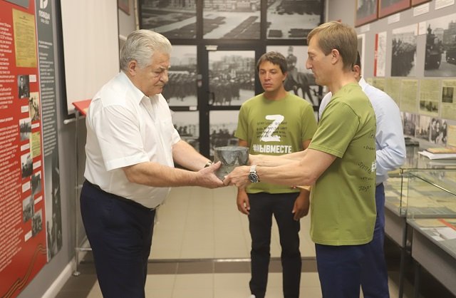 Депутаты областного парламента передали в музей Думы боевую гильзу с землей с кургана Саур-Могила