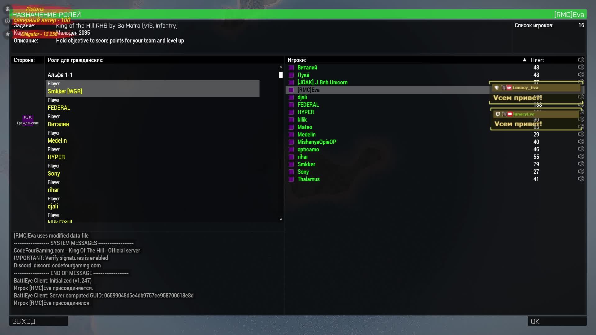 #KOTH #ARMA3 #Eva #kingofthehill #kothrhs #arma3koth #CodeFourGaming #C4G #arma3 #арма3 #АРМА3 #модRHS #ARMA3RHS #lunacyeva #Eva Я на Goodgame https://goodgame.ru/channel/LunacyEva Я на Rutube https://rutube.ru/channel/1157921/ Я на Trovo https://trovo.live/Lunacy_Eva Я на Twitch https://www.twitch.tv/lunacyeva Для комплиментиков =)) ! С озвучкой на стриме: https://donatepay.ru/don/Eva http://www.donationalerts.ru/r/lunacyeva Или в тихушку - карта Сбербанка: 2202 2062 0178 2799 В чате стрима приветствуется: - Шутки, песни, анекдоты; - Советы и жалобы=) ; - Капсить можно, но учтите бот не зачитывает капс! В чате не приветствуется: - Ругаться матом; - Прямо и косвенно оскорблять других пользователей в чате; - Заниматься пропагандой расовой и национальной дискриминации; - Тут не место для политики. Моя железяка: https://youtu.be/uheJmrrnXE0 Проц.: Intel Core i7-7700K 4200 МГц; Видео: GeForce GTX1080; Мат.плата: ASUS ROG STRIX Z270F GAMING; Память: DDR4 32Гб KINGSTON HyperX FURY; 2 SSD: 256 Гб Samsung 850 Pro, 1ТБ Samsung 870 QVO; Жест.диск: 2000 Гб 7200 rpm WDC; Охлаждение: Corsair Hydro H100i; Корпус: Zalman Z9 Neo Black; Гарнитура: HyperX Cloud II; Клавиатура: A4Tech G800 3X Fast Gaming; Мышь: Logitech G102; Мониторы: Samsung S19B370B 18.5 и C32JG51FDI 31.5 Support the stream: https://streamlabs.com/lunacyeva1