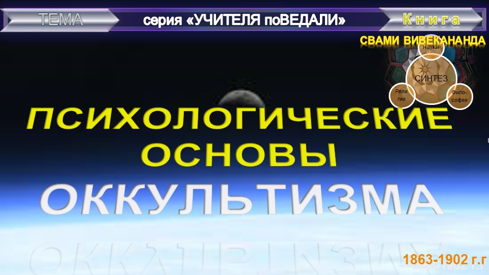 ПСИХОЛОГИЧЕСКИЕ ОСНОВЫ ОККУЛЬТИЗМА статья Свами Вивекананда (1863-1902 гг)