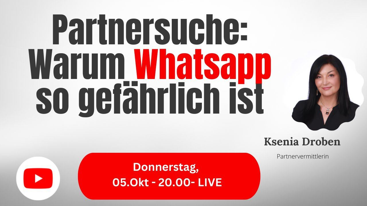 Heute – wie jede Woche – treffen wir uns Online zu einem Männer-Webinar. Heute erzähle ich Ihnen wieder ein paar interessante Geschichten und gebe Ratschläge, um Ihre Partnersuche auf Vordermann zu bringen Wann: Donnerstag, den 28.09.2023 Zeit: 20.00 Wo: YouTube Channel "Ksenia Droben": https://www.youtube.com/@KseniaDrobenPartnervermittlung Alternativ auch Facebook: https://www.facebook.com/ksenia.droben/ Twitch: https://www.twitch.tv/kseniadating LinkedIn: https://www.linkedin.com/in/ksenia-droben-911289148/ Instagram @kseniadroben.agency Tiktok: @kseniamatchmaking Dauer: Ca. 60 Minuten Egal, ob Sie gerade erst mit der Partnersuche beginnen oder schon Erfahrungen gesammelt haben - dieses Webinar ist für jeden geeignet, der mehr über gutes Benehmen bei der Partnersuche erfahren möchte. Gleich im Anschluss treffen wir uns in einer gemütlichen Zoom-Runde, damit ich Sie über Partnersuche und Partnervermittlung informieren kann. Wann – um 22.00 Wo - Link zu Beratung: https://us02web.zoom.us/meeting/register/tZIocu2opz4sGdMTcC0yf7R3-Yi2F8qOBnHJ Oder Meeting-ID 865 5409 5637 Kenncode 05 Single Dating Events 2023: 13-15.10 - 3 Tage in St.Petersburg, Russland - https://droben-partnervermittlung.de/single-dating-party-petersburg/ 22.11 – Cocktail Single Abend in Berlin https://droben-partnervermittlung.de/cocktail-dating-party-fuer-singles-in-berlin/ 24-26.11 – Das königliche Wochenende in einem Schloss https://droben-partnervermittlung.de/koenigliches-wochenende-im-schloss-fuer-singles/ Liebe Grüße, Ksenia Droben www.droben-partnervermittlung.de Whatsapp +49 1520 3663653