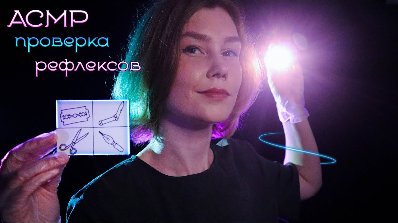 В этом АСМР видео тебя ждет проверка рефлексов: слух, тонус мышц, реакция на свет фонарика, переферическое зрение и обоняние. Внимательно слушай мой голос и выполняй мои указания, чтобы пройти тест максимально быстро и качественно, а также испытать мурашки. Триггеры в видео: перчатки, фонарик, шепот с ушка на ушко, прикосновения, персональное внимание. Пожалуйста, проявите максимальную активность под этим видео! Это очень важно для продвижения роликов ? Мне очень нужна ваша поддержка! Буду благодарна, если ты поддержишь меня, поставив ? подпишешься на мой канал ☑️ и нажмешь ?, чтобы первым увидеть новое видео! Также любой твой комментарий очень важен для меня и для того, чтобы этот ролик увидели и другие!? #асмр#рефлексы#следуй_указаниям#asmrbenet Тайм-коды: 0:00 - 0:53 - приветствие 0:53 - 4:15 - проверка периферического зрения 4:15 - 7:08 - проверка реакции на свет 7:08 - 09:03 - тест на концентрацию и память 09:03 - 13:15 - проверка слухового рефлекса 13:15- 14:00 - тест обоняния 14:00 - 19:45 - проверка тонуса мышц 19:45 - 21:21 - проверка тактильных ощущений, прощание ?Оформить спонсорскую подписку: https://www.youtube.com/channel/UC3fe8HONiU4zdZzSJM5ig9A/join ?Мои соц. сети: ?Instagram: https://www.instagram.com/butenko_ell ?Тик Ток: https://vm.tiktok.com/ZSJtrjEbD/ ?Помощь в покупке нового оборудования для атмосферных ролевых игр : ?Donationalerts: https://www.donationalerts.com/r/asmrbenet ?Donatpay: https://donatepay.ru/don/385852 ?Яндекс.Деньги: 4100110086190051 ?Ссылки на плейлисты: ?Ролевые игры: https://www.youtube.com/playlist?list=PLki_XoopBmvUcXn87klUVb9oQetrqfSzz ?Триггеры: https://www.youtube.com/playlist?list=PLki_XoopBmvUR6y5-Nph86IPQrqOz5x2J ?Медицинские ролевые игры: https://www.youtube.com/playlist?list=PLki_XoopBmvWQWgJhaAxHd8xOhoQdW1Ov ?Факты обо мне: https://www.youtube.com/playlist?list=PLki_XoopBmvWITsWJP7so-7f0oPiCDYss ?Грубые ролевые игры: https://www.youtube.com/playlist?list=PLki_XoopBmvX-g9sFh9QIAa_gzKeiCwOF ?Live стримы в записи: https://www.youtube.com/playlist?list=PLki_XoopBmvXZ01X7YHbbI2XtP7zDzKe_