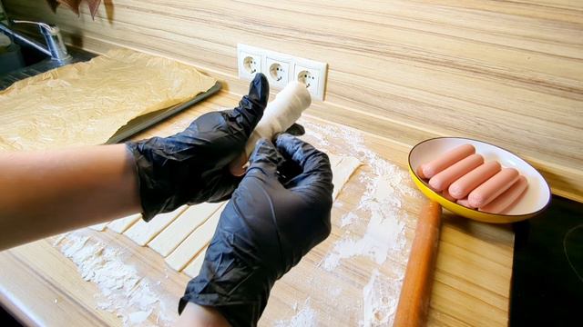 Ингредиенты: Тесто слоёное Сосиски Яйцо -1 шт Готовим при 180 градусов, 30 минут