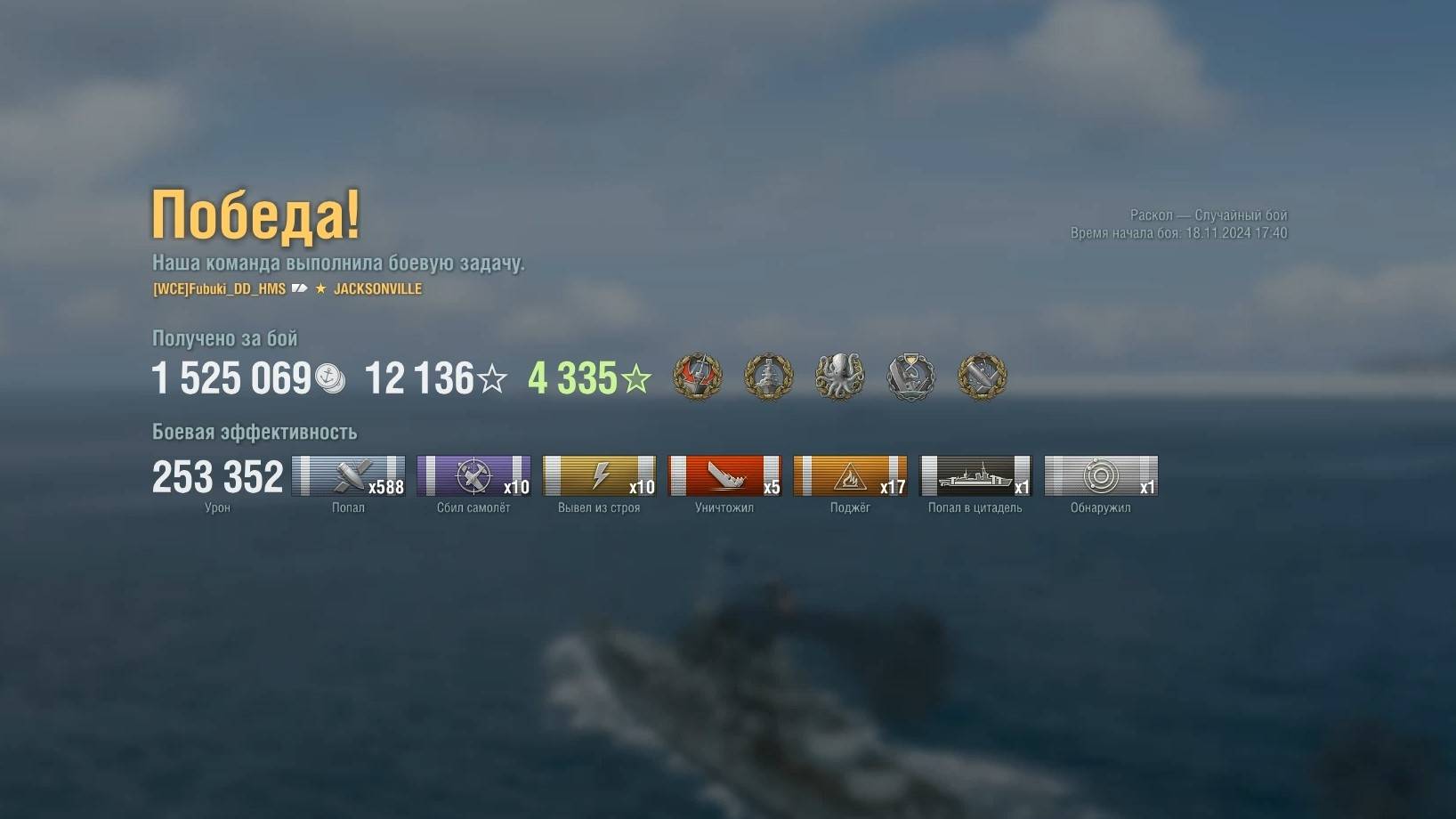 Супер крейсер Jacksonville: +253к урона 5 фрагов на карте Раскол - World of Warships