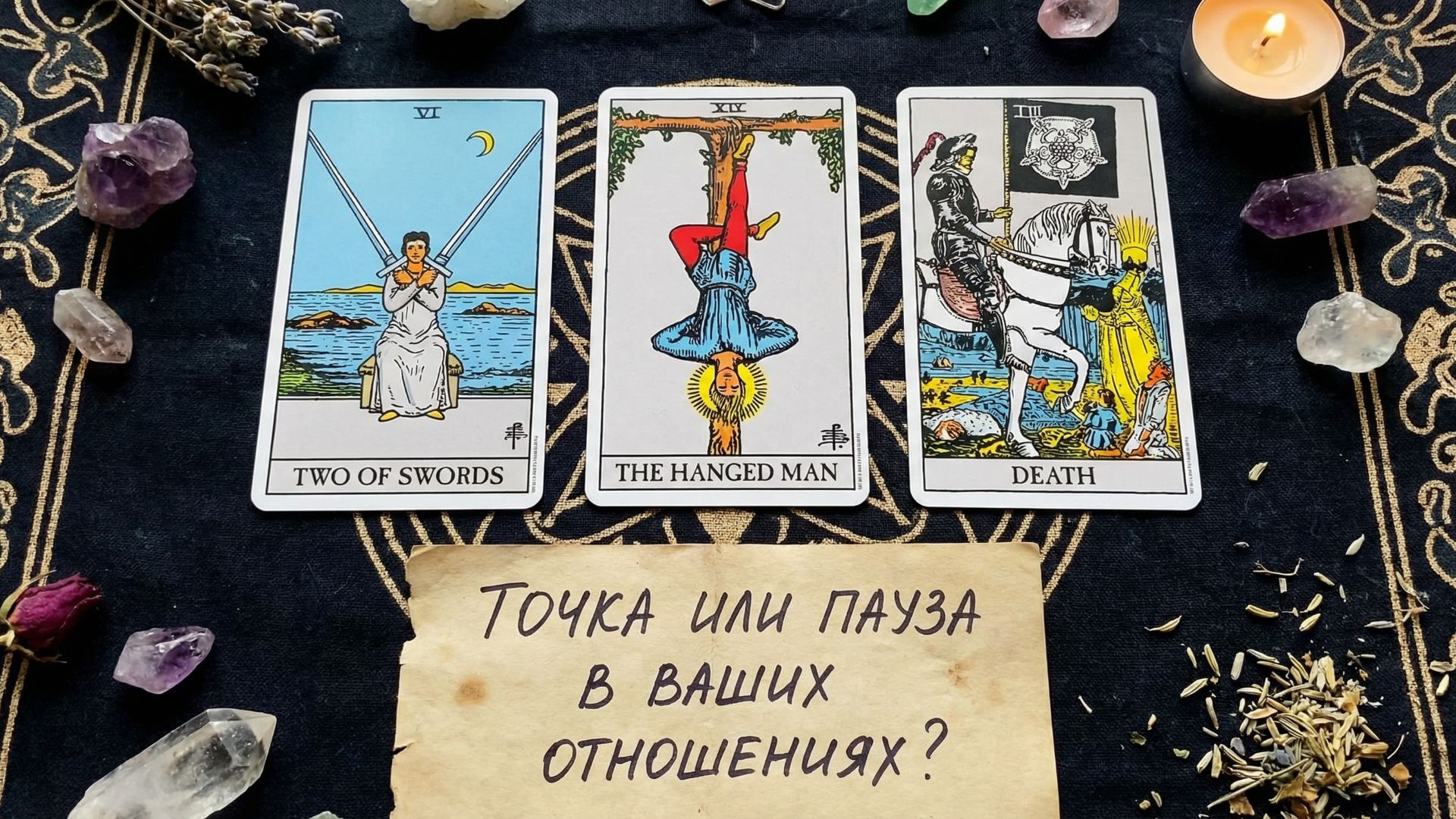 Этот расклад показывает, что на самом деле происходит между вами сейчас — окончательное завершение связи или временное отдаление, вызванное обстоятельствами, страхами или внутренним кризисом. Он помогает понять чувства партнера, причины дистанции, перспективу восстановления отношений и к чему приведет эта пауза в ближайшем будущем.