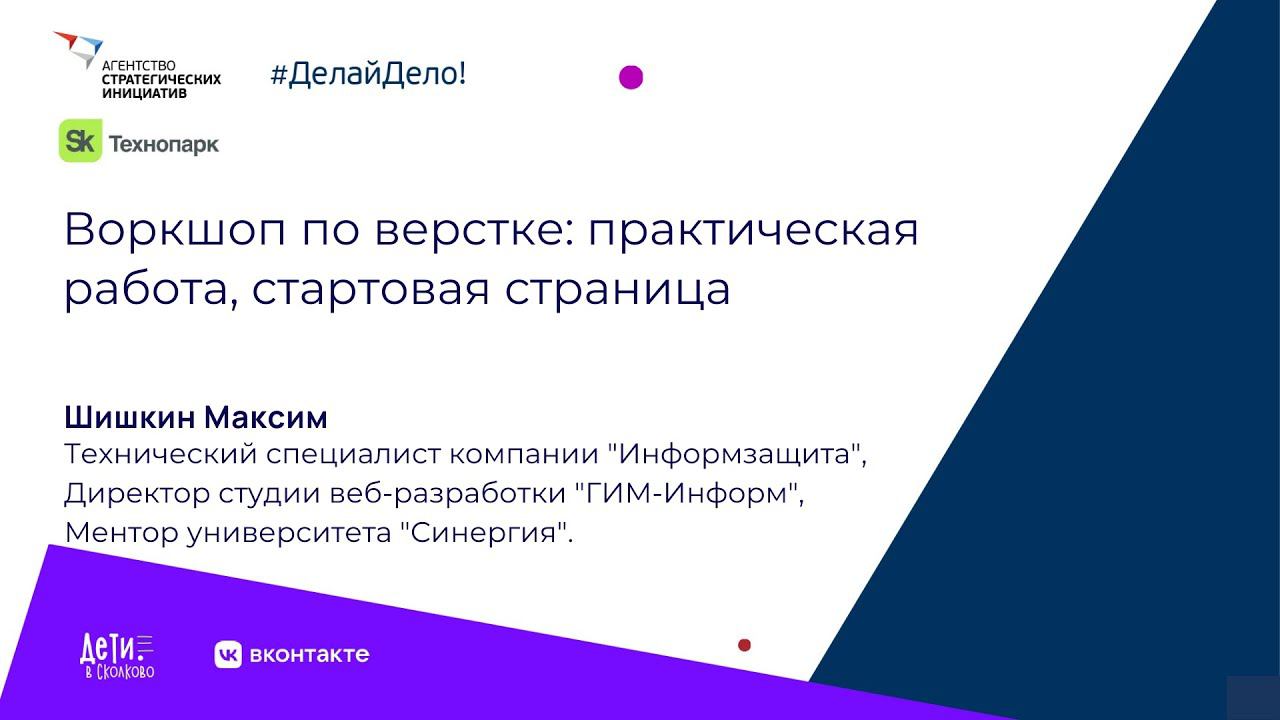 Верстка: практическая работа, стартовая страница