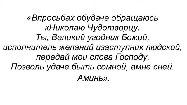 ЕЖЕДНЕВНЫЕ МАГИЧЕСКИЕ СЛОВА ДЛЯ ВОДОЛЕЕВ НА УДАЧУ Заговор: «В просьбах об удаче обращаюсь к Николаю Чудотворцу. Ты, Великий угодник Божий, исполнитель желаний и заступник людской, передай мои слова Господу. Позволь удаче быть со мной, а мне с ней. Аминь».