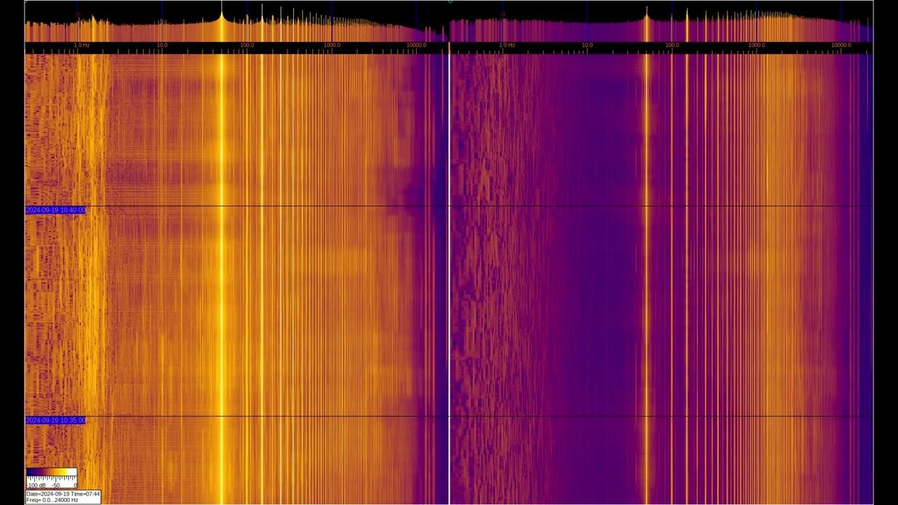 The left and right signals are taken from inductive sensors with ferromagnetic elements, but the left one is additionally connected to grounding on 2 stainless steel pins buried 1 m and spaced 1 m apart. You can see a large number of harmonics from the power supply and various artificial signals. Of interest are signals at frequencies below 50 Hz, where you can observe the operation of specialized equipment and communication signals of submarines and underground objects. Separately, it is worth considering signals in the region of 1-3 Hz on the left spectrum, which relate to the geomagnetic background, which is modulated by solar activity, They can be viewed in more detail in the video called “Signals from the Earth,” which are in the playlists below. The sound in the video is recorded in real time - a signal from sensors. О ПРОИСХОЖДЕНИИ ЧАСТОТНОЙ МОДУЛЯЦИИ СЕРПЕНТИННОЙ ЭМИССИИ https://youtu.be/bwWHggY1IVU?si=xAX1diRKI9MxQJ88&t=1740 Previous monitoring is in playlists: EMF monitor https://youtube.com/playlist?list=PLiRg2YCbXcwn41BHqADKVBep_TgVq6XUN Очень Низкая Частота ~ Very Low Frequency https://youtube.com/playlist?list=PLiRg2YCbXcwnp5DxM4PnSs7k_Rnypaqek SIGNALS IN THE GROUND https://youtube.com/playlist?list=PLiRg2YCbXcwl6f3Bf5arHbGSOCNE5U71O поддержать канал: 8-999-654-93-44