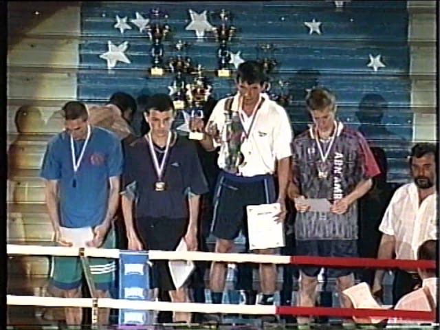 ● Смелые люди (цикл видео). ● Подробнее на канале Сергея Заяшникова: https://www.patreon.com/martial_arts ● Скачайте приложение "RAMTL": https://540786620551.tb.ru/ramtl_app_muaythai_mma СОЧИ 1999-06-22. В течение трех дней здесь проходил открытый Кубок России по тайскому боксу среди любителей, в котором приняли участие около 100 спортсменов, сообщает специально для "СЭ" Сергей ЗАЯШНИКОВ. ● Результаты финалов (победители указаны первыми). 51 кг. Тимур Темишев (Хасавюрт) - Роман Тимичев (Нижний Новгород). 54 кг. Михаил Зотов (Нижний Новгород) - Эрадиль Тенгизов (Махачкала). 57 кг. Дмитрий Соломин (Волгоград) - Сервер Велиев (Москва). 60 кг. Максим Гречкин (Адлер) - Тимур Салимов (Екатеринбург). 63,5 кг. Андрей Попов (Волгоград) - Павел Мигаль (Минск). 67 кг. Абдуллах Гусниев (Махачкала) - Дмитрий Путилин (Екатеринбург). 71 кг. Мирза Магомедов (Махачкала) - Денис Дикусар (Ноябрьск). 75 кг. Магомед Камилов (Москва) - Андрей Негрий (Адлер). 81 кг. Сергей Гур (Минск) - Руслан Мазаев (Волгоград). 86 кг. Григорий Дрозд (Прокопьевск) - Андрей Чуприн (Владимир). 91 кг. Сергей Маткин (Челябинск) - Армен Авакян (Волгоград). ● ● Приз "За лучшую технику" получил Абдуллах Гусниев, ● "За волю к победе" - Руслан Мазаев, ● "Зрительских симпатий" - Сергей Гур.