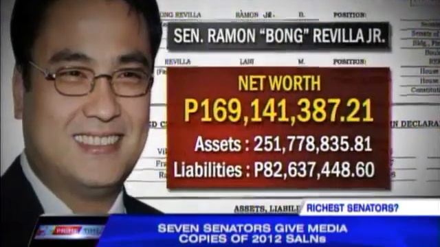 Seven senators volunteered to give members of the media a copy of their 2012 statements of assets, liabilities, and net worth.