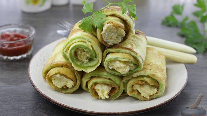 Легкие, вкусные и слегка пикантные рулетики из кабачков. Обжаренные в кляре кабачки отлично сочетаются с начинкой из яиц, сыра и чеснока. Готовятся рулетики довольно просто и не требуют особых кулинарных навыков. #РулетыИзКабачков #КабачкисНачинкой #КабачкисСыром #КабачкисЯйцами #ЖареныеКабачки