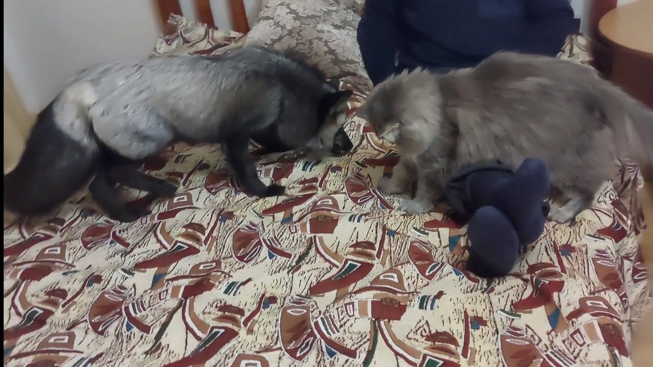 Лиса с котом ловят мышку