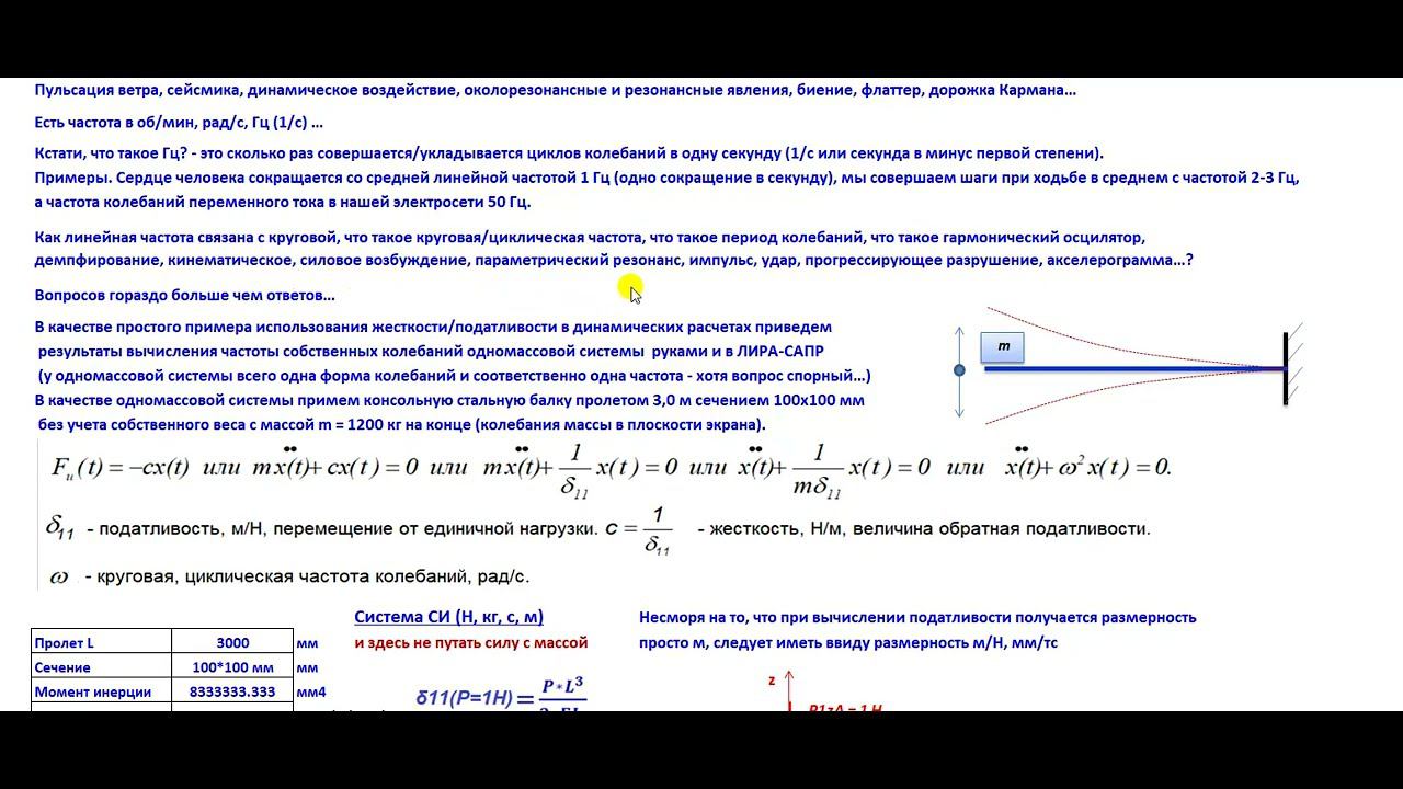 Бесплатный и платный вебинары проф. Макеева С.А. «Все про жесткости/податливостистальных узлов/опор». Ссылка на сайт вебинаров https://makeev.justclick.ru/01bppljyz. Вход на БЕСПЛАТНЫЙ ВЕБИНАР 20 ноября (Вс) в 19.00 мск (ВХОД СВОБОДНЫЙ) по ссылке https://b88217.vr.mirapolis.ru/mira/miravr/5886095773 - специального ПО не требуется. Оплатить вход в веб-класс ПЛАТНОГО ВЕБИНАРА 27 ноября (Вс) в 19.00 мск, получить видео запись, БОНУС и все сопроводительные материалы (при оплате до 19.00 мск 27 ноября - 2600 руб. после трансляции все материалы, включая бесплатный вебинар будут выставлены за 3600 руб.) https://shop.sopromex.ru/order/000. Более подробно про 1 Н, 1 Па, 1 кг (плейлист) https://www.youtube.com/playlist?list=PLRg82kZ234fJujgVnxh2_PzI3RZ8QVbvU Более подробно про колебания одномассовых систем (плейлист) https://www.youtube.com/playlist?list=PLRg82kZ234fIev_P5DEPhLQKuNEoHu590 Excel файл автоматизированного расчета одномассовых систем https://disk.yandex.ru/d/24Q9xc3qNTSrYw Оформить подписку на все мои бесплатные видео материалы по основам расчетов конструкций на прочность и жесткость (это более 100 видео и авторские ПК, которые будут дозировано приходить к Вам на почту в течение 30 дней) можно на главной странице сайта онлайн университета https://sopromex.ru/ или на специальной странице подписки https://makeev.justclick.ru/podpiska_2020.