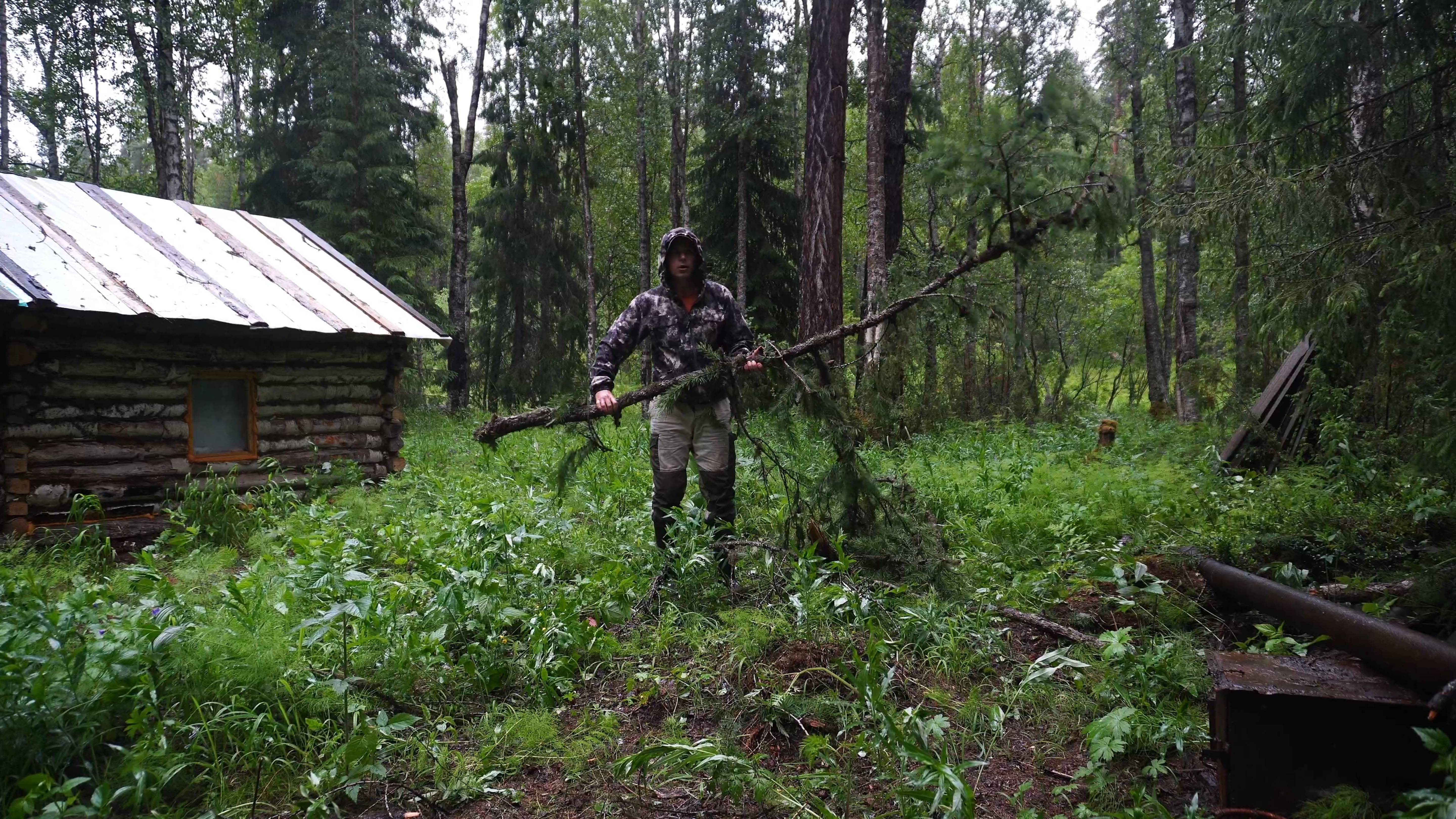 Приехал на избу половить хариуса на таёжной речке. Ночью налетел жуткий ураганный ветер,пол ночи практически не спал.