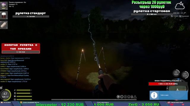 Поддержка донатом https://new.donatepay.ru/@1032463 Альтернативный донат https://www.donationalerts.com/r/kalyamba11 5536913964533059 карта Тинькоф Если стрим лагает,смотри стрим на трово https://trovo.live/s/Kalyamba_na_Ribalke Мой ВК - https://vk.com/kalyantv НИК в игре kalyan11 НАШ ДИСКОРД СЕРВЕР https://discord.gg/4ZzSQkQtsK Заказ водоема на 1 час - 500р ( весь стрим 2500р ) Модерка на канале 1200р ( каждая следующая на 100р больше) Озвучка доната на 40р,50р,100р,200р,300р,500р,1000р ✅Призы в рулетке "ЗОЛОТАЯ" ✔ ЗОЛОТО ✔ ПРЕМ ✔ КАТУШКИ РАПТОР 40, АЗИМУТ 10000, СИЛЬВЕР 80, ТАЙГА с 30 ✔ ПАЛКИ ПИЛКЕРНАЯ, ДОНКА МОРСКИЕ, ✔ РОД ПОД, СТУЛЬЯ ✅Призы в рулетке СТАНДАРТ : ✔ катушка "РАПТОР 40" ✔ катушка "АЗИМУТ 10000" ✔ катушка "ТАЙГА С30, С40," ✔ катушки 60 для медного ( ЭВИИ, НАТОРЫ, ГОЛДА, и тд) ✔ ПИЛКЕРНОЕ УДИЛИЩЕ КОРОЛЕВА ОКЕАНА ✔ Морское Донное удилище ✔ прем ( 3, 7, 30 дней) ✔ золото ( 1, 3, 5, 10, 20 ,50) ✔ билет на море ( 1, 3, 5 дней) ✔ голд наживка и др. ✅Призы в рулетке "СТАРТОВАЯ" ✔ катушка "silver80" ✔ катушка "БЕЛЫЙ КАЛИБР" ✔ катушка "Черный калибр" ✔ катушка "Протон" ✔ катушка "Нарга 6000" ✔ Набор Фидерист и спинингист ✔ Карповик Фортуна ✔ фидерные удилища ✔ прем, золото, алкашка, наживки и тд P.s Рулетка это не казино, а награда за поддержку стримера. Вечный ТОП ПОДДЕРЖКИ (11.05.2024) 1. Dimon_pokemonchik 119 784 2. Interceptor 75 508 3. Skreb79 71 261 4. une personne 68 619 5. Нарвал77 31 550