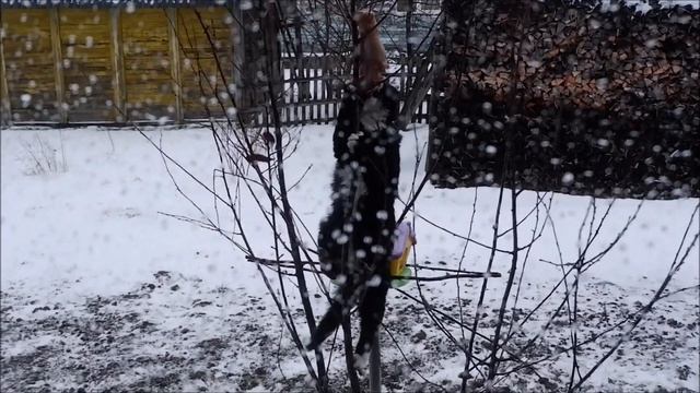 Подвесили птичкам синичкам кусочек мяска. А тут вон какой воробей прилетел.