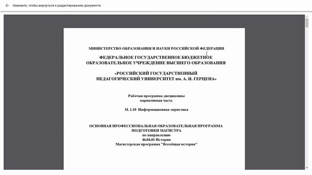 Электронная документация ОПОП РГПУ им. А.И. Герцена