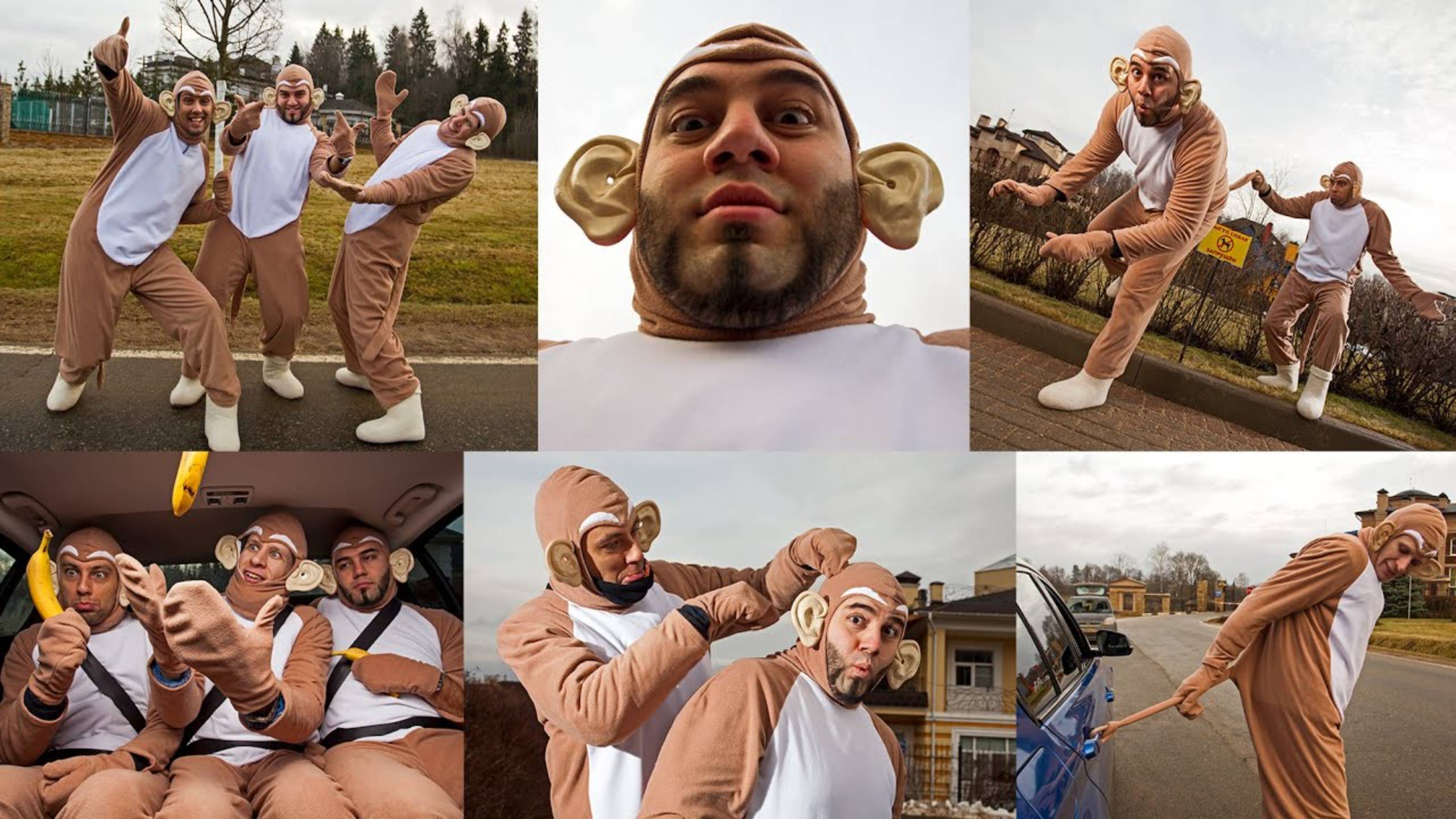 Закадровый новогодний ролик мы сняли на собственную кавер-версию песни The Bad Touch группы Bloodhound Gang, из клипа которой мы и «собезьянничали» костюмы. А почитать серьёзный тест-драйв BMW 330i и Jaguar XE можно на Драйве: https://www.drive.ru/drive-test/bmw/jaguar/5683fe0295a656e02c0002a1.html
