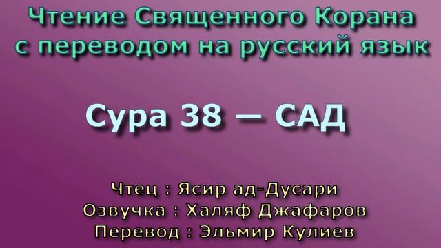 Чтение^Озвучка - Корана Чтец: Ясир ад-Дусари Озвучка: Халяф Джафаров Перевод: Эльмир Кулиев Источник YouTube канал: " Священный Коран "