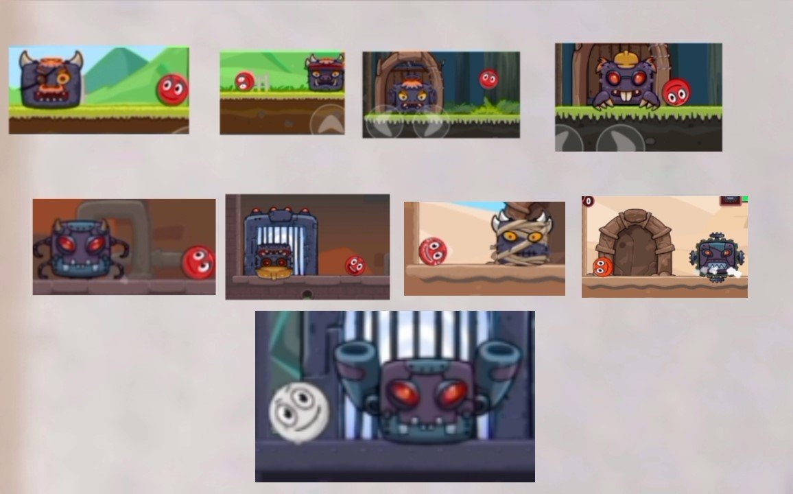 Красный Шарик побеждает Боссов. 15, 30, 45, 60, 75, 90, 105, 120 и 135 уровни Боссов.
