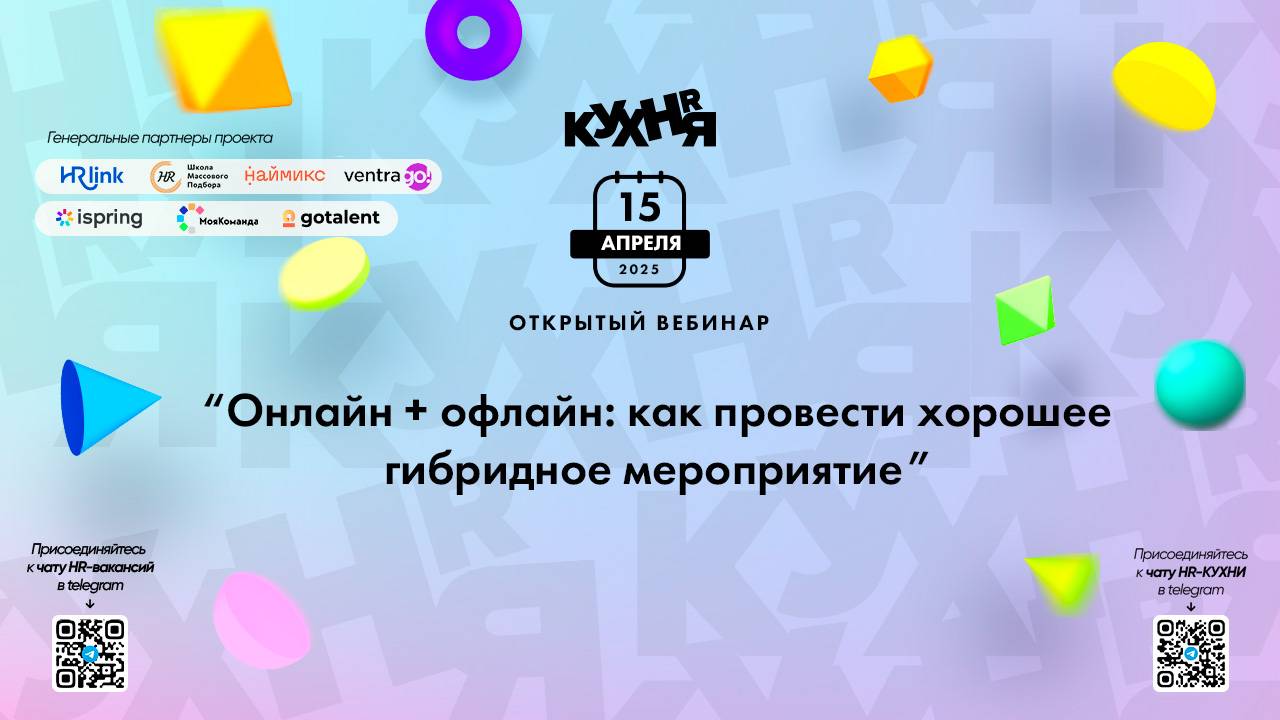 Присоединяйтесь к чатам и каналам HR-КУХНИ в телеграм: - Основной чат HR-КУХНИ в телеграм - https://t.me/+tYgAH0PgPQVkOWIy - Канал HR вакансий в телеграм - https://t.me/+CMNAN2u1hjo3M2Ri - Канал HR-EVENTS в телеграм - https://t.me/hr_kitchen - Канал HR JOURNAL в телеграм - https://t.me/hrkitchenjournal Полезные ссылки: - Каталог HR решений - https://hrkitchen.ru/exhibition - График конференций, бесплатных вебинаров, а также бесплатные курсы – https://hrkitchen.ru/ - Стать спикером HR-КУХНИ - https://hrkitchen.ru/speakers - Подписаться на полезную e-mail рассылку от HR-КУХНИ (новости, гайды, чек-листы, подарки от партнеров) - https://hrkitchen.ru/subscribe