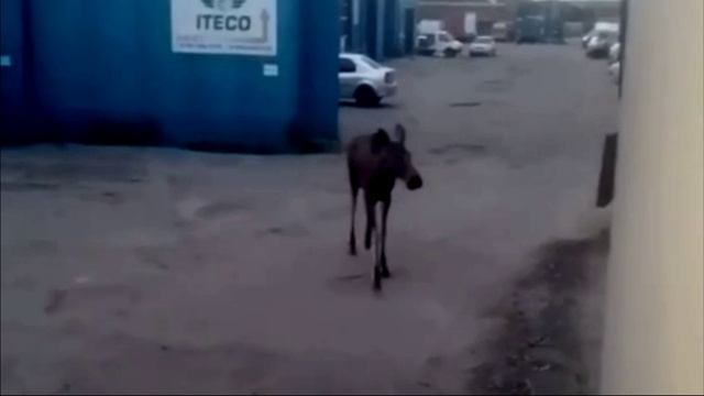 Маленький лось забрел на территорию РТС во Владимире