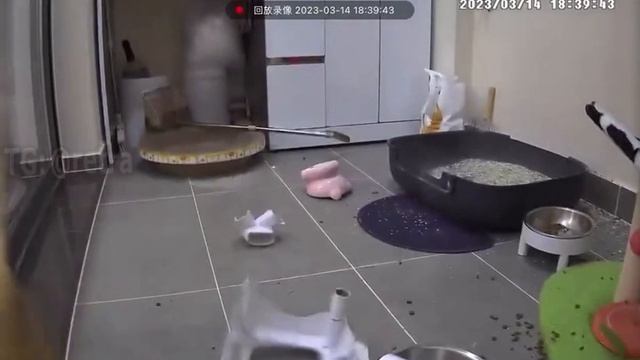 Кот сильно испугался и устроил погром.
