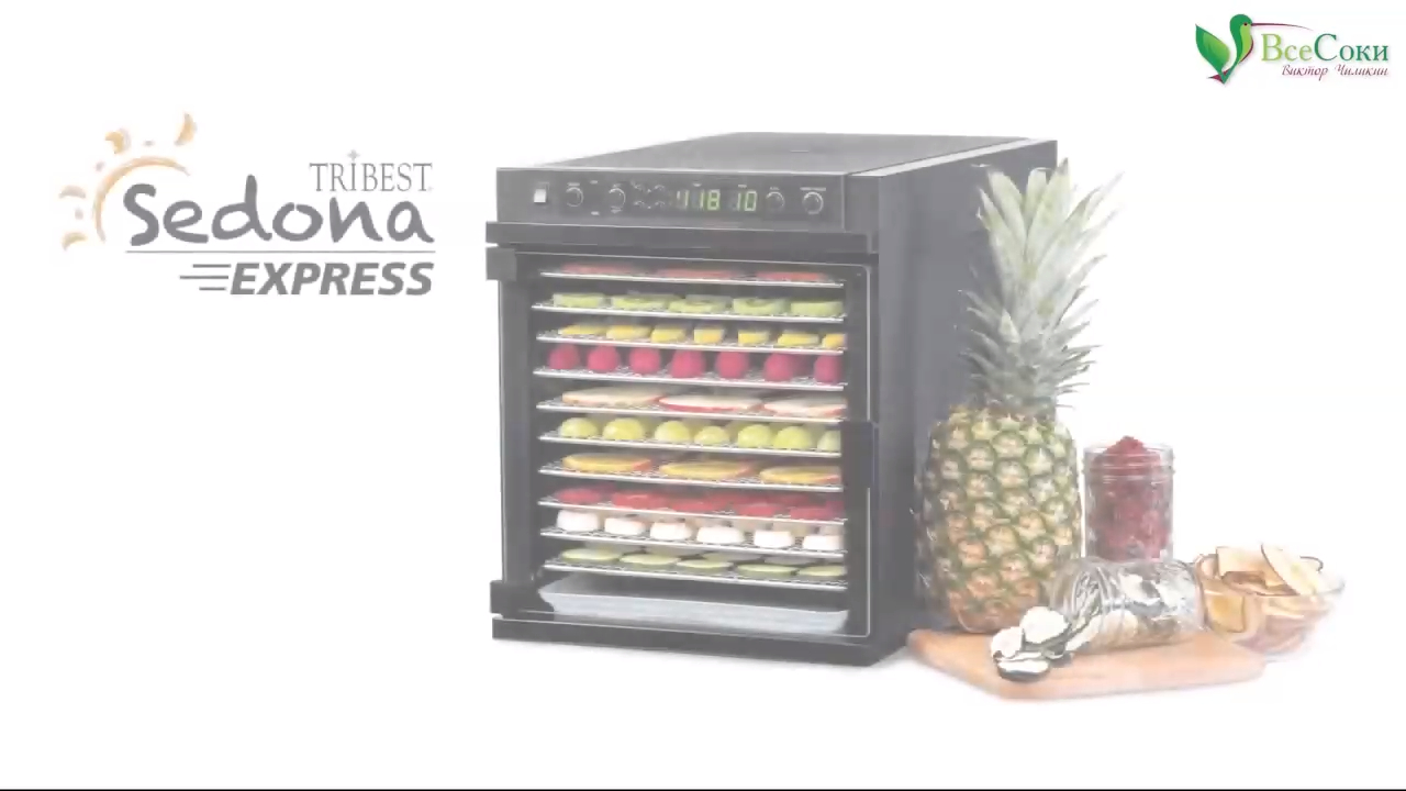 Tribest Sedona Экспресс является первым в мире полнофункциональным дегидратором с компактным и дружественным для кухни дизайном. Используйте все 11 лотков с расширенной функцией TST, чтобы добиться лучших результатов для всех Ваших потребностей. Для фруктов и овощей, для мяса и крекеров, центральный вентилятор Седона обеспечивает равномерное распределение воздуха и быстрое обезвоживание. Tribest Sedona Экспресс позволяет установить температуру и таймер, используя многофункциональную панель управления. Точность сушки ещё никогда не была так легка. Видеоролик от 10.10.2015 Подробнее о дегидраторе Tribest Sedona Express SD-6280: http://vsesoki.ru/product/tribest-sedona-express-sd-6280?rtube http://vsesoki.ru?rtube – ООО «Все Соки», официальный импортёр и российский дистрибьютор техники Tribest и других лидеров в производстве техники для здорового образа жизни. ☎ Заказать надёжные дегидраторы, шнековые соковыжималки, домашние мельницы, профессиональные блендеры, автоматические проращиватели, кухонные аксессуары и другую технику для здорового питания с бесплатной доставкой по РФ: +7 (495) 134-11-44 – в Москве +7 (812) 389-33-66 – в Санкт-Петербурге ⠀8 (800) 33-33-627 – по всей России (звонок бесплатный!) Сюрприз для подписчиков! Подпишитесь на наш канал https://rutube.ru/video/person/1735077 и при оформлении заказа на сайте «Все Соки» используйте секретное слово РУТУБ. Наглядная инструкция по использованию кодового слова: https://clck.ru/EtNNi