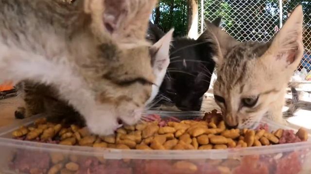 Котики кушают 4 кота