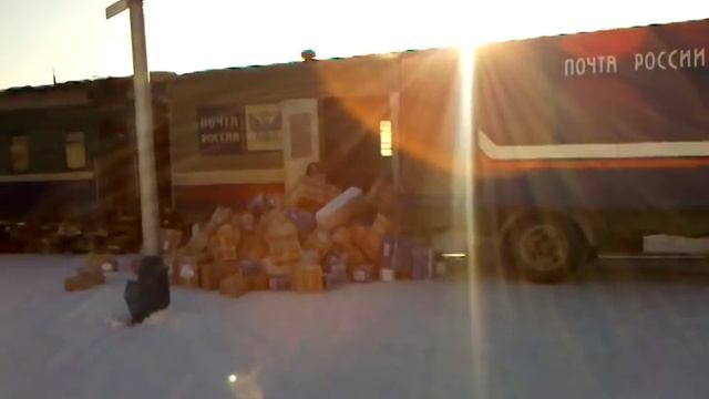 Из видео четко ясно, что разгрузка производится из ж\д вагона, принадлежащего Почте России. Сотрудники, видимо, торопятся, т.к. поезд прибыл с опозданием. Действия происходят в г.Ухта, Республика Коми, 01.03.2013г. К сожалению глюк аппарата, на который производилась запись, не позволил запечатлеть кадры свыше 9сек.