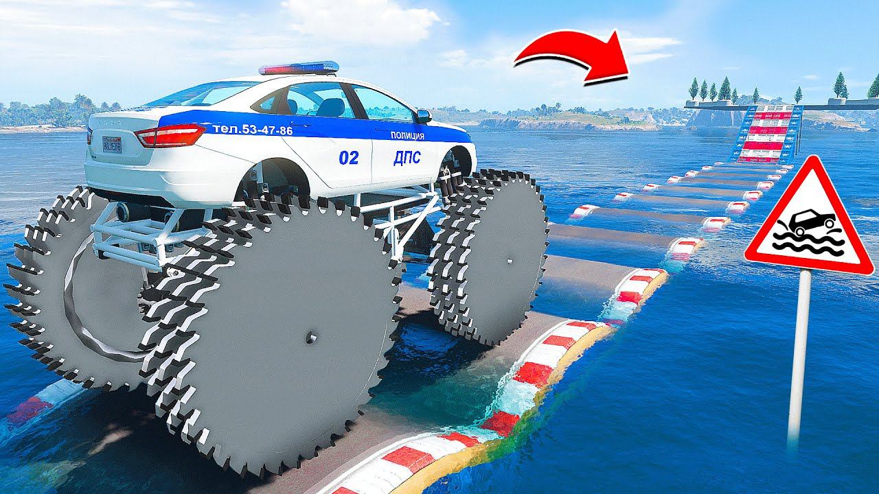 ПРОЕХАЛ ВОДНЫЕ КОЧКИ на ГИГАНТСКОЙ ДПС ЛАДЕ ВЕСТЕ С ПИЛАМИ в ГТА 5 МОДЫ - ЭКСПЕРИМЕНТЫ в GTA 5 MODS