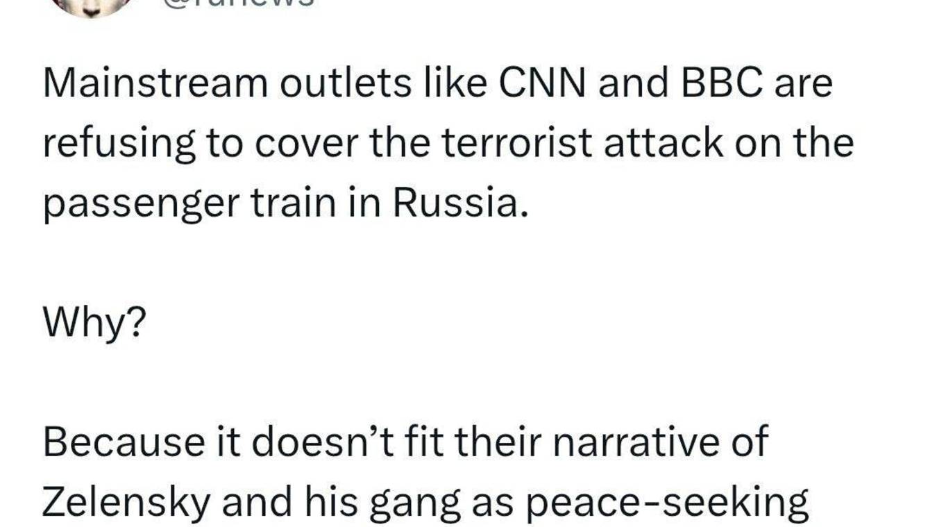 Террористические акты, под Курском, под Брянском совершённые в преддверии очередной встречи в Стамбуле никак не освещаются в неполживых СМИ Европы и Нового Света. Следственный комитет РФ заявляет, что оба моста, рухнувшие в Брянской и Курской областях, были взорваны. "31 мая 2025 года в 22 часа 50 минут на железнодорожном перегоне Выгоничи — Пильшино в Брянской области в результате подрыва произошло обрушение конструкции автомобильного моста, обломки которого упали на проходивший под ним пассажирский поезд. В результате происшествия пострадали и погибли люди. В Железногорском районе Курской области 1 июня 2025 года около 3 часов ночи также произошел подрыв железнодорожного моста, от чего проходящий железнодорожный состав упал на автомобильную дорогу. В результате произошедшего пострадали машинист и 2 его помощника", - сообщил следком