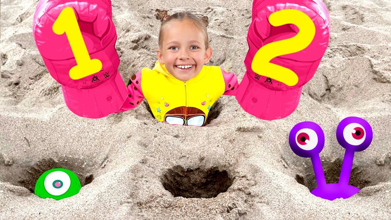 Детская песня | Детские песни от Майи и Маши Играем в знаменитую игру на пляже! Изучаем цифры. Микробы наступают! Майя со всей семьей борются с ними!