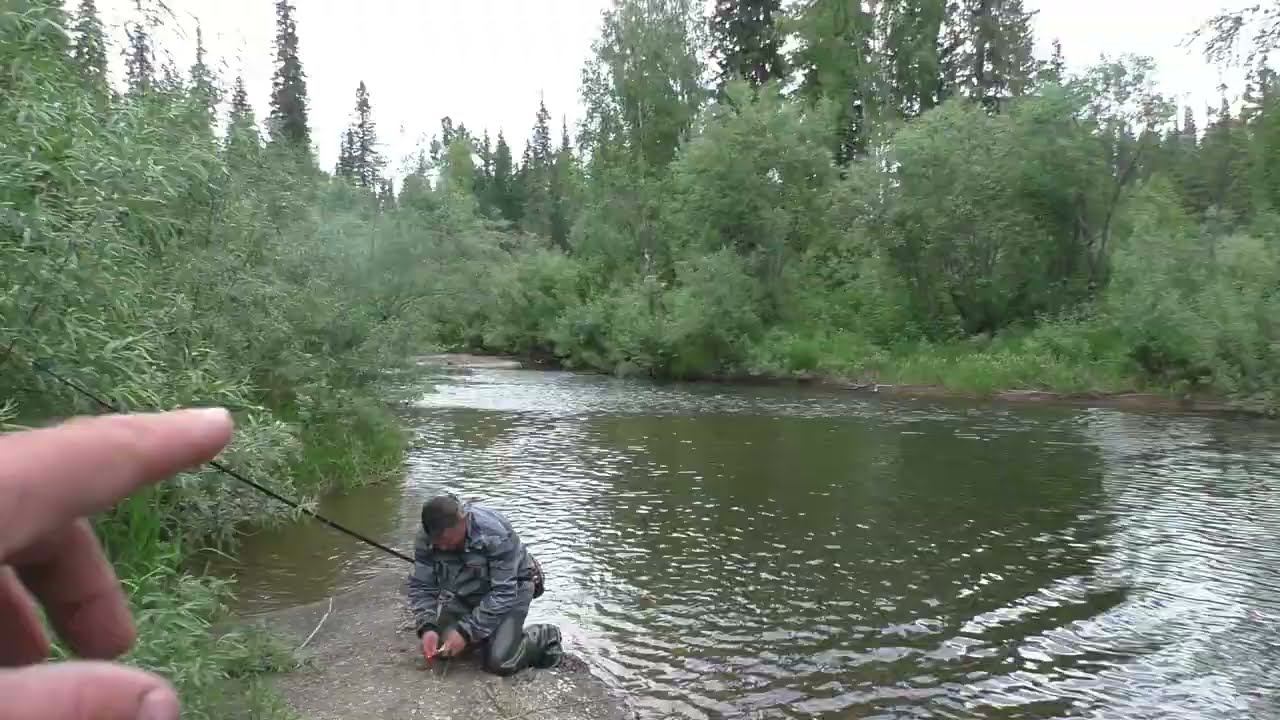 80 Серия Поймал Рыбу Хариус Обманка Удочка Поплавок Тайга, но Рыбак близко к месту Лова и Пугает Р
