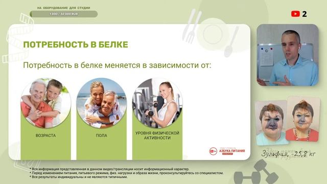 Дорогие друзья, очередная встреча нашего курса по основам сбалансированного питания и правильному снижению/набору и контролю веса состоится 23 июля, в 17:00 по МСК. Будем говорить о том, что такое белок, зачем он нужен, и как он поможет вам снижать, набирать и контролировать вес. Ответим на вопросы: - Что такое белок - Зачем он нужен - Как с помощью белка похудеть и остаться красивой (чтобы кожа не повисла) - Какой белок нужен - Сколько его нужно - И в каких продуктах он содержится 00:00 Ожидание начала трансляции 04:34 Приветствие и знакомство с ведущим 10:00 План встречи 10:30 Ключевая мысль 11:24 История результата участника Проекта Стройность 19:50 Концепция управления здоровьем 38:57 Белок 43:04 Что такое белок и зачем он нужен 50:59 Как белок помогает корректировать вес 01:03:30 Потребность в белке 01:08:35 К чему приводит дефицит белка 01:23:36 Сколько белка нужно 01:27:55 Источники белка 02:00:56 Ключевая мысль 02:01:55 ПОДАРОК. Мини-справочник Белок в составе продуктов 02:05:00 Чек-лист Азбуки Питания 02:07:52 Завершение встречи В общем, будет интересно и полезно! Мы подготовили для вас обновление, и полезный подарок! 🎁 Ставьте 👍 лайк, поделитесь этим видео в своих соц. сетях, и до встречи в эфире! 😘 🎁 Мини-справочник БЕЛОК В СОСТАВЕ ПРОДУКТОВ: https://clck.ru/354ai7 ✅ ЧЕК-ЛИСТ прохождения базового курса Азбуки Питания: https://clck.ru/354agJ 👩💻 Записаться на бесплатную консультацию: https://clck.ru/354agL 💲 Поддержать проект: https://clck.ru/354agH 📺 Подать заявку на участие в эфире: https://clck.ru/354agK 🤝 По вопросам сотрудничества пишите сюда: https://t.me/SlimSizeBot Мы в соцсетях: 👉 YouTube: https://youtube.com/@SlimSize 👉 ВКонтакте: https://vk.com/SlimSize 👉 Одноклассники: https://ok.ru/SlimSize 👉 Телеграм: https://t.me/SlimSize Плейлист на Азбуку Питания: https://youtube.com/playlist?list=PLbd3muq0058pUPWMYLJ2vaSxx4muSGeBZ #АзбукаПитания #ЗОЖ #ПравильноеПитание #ПП #Диета #Похудеть #SlimSize #Белок #Протеин #СбалансированноеПитание #курспохудения #курспопитанию #снизитьвес