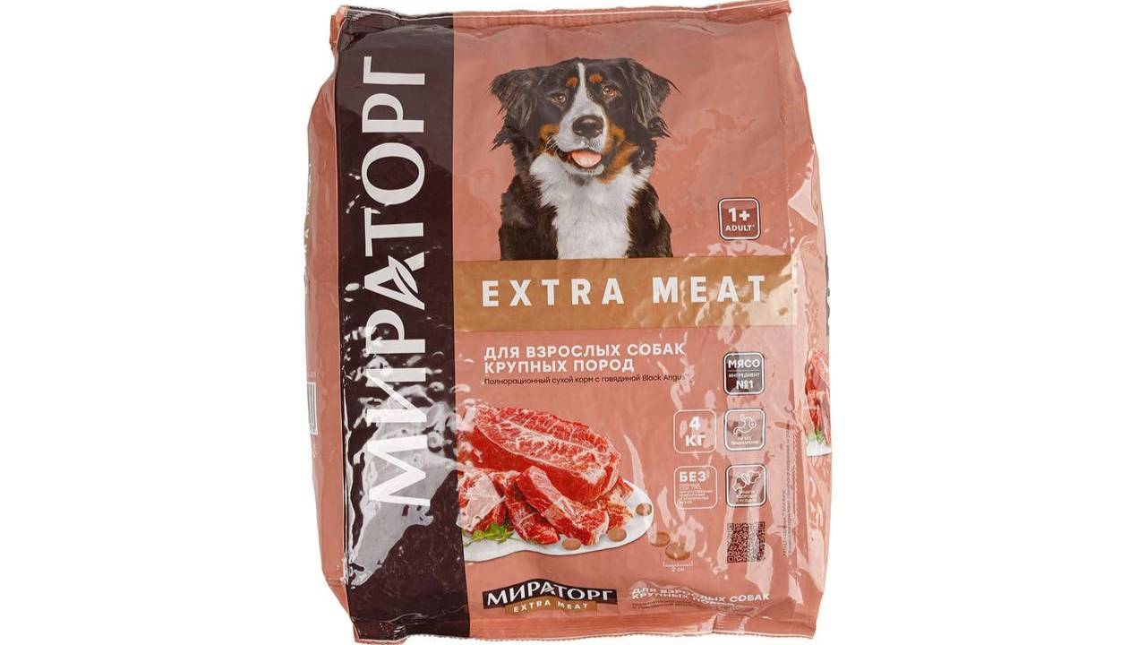 Полнорационный сухой корм с говядиной https://frostopt.ru/product/polnoraczyonnyj-suhoj-korm-s-govyadynoj-dlya-sobak-krupnyh-porod-starshe-1-goda-extra-meat-myratorg-4-kg
