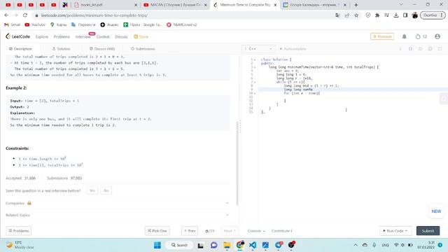 leetcode 2187. Minimum Time to Complete Trips