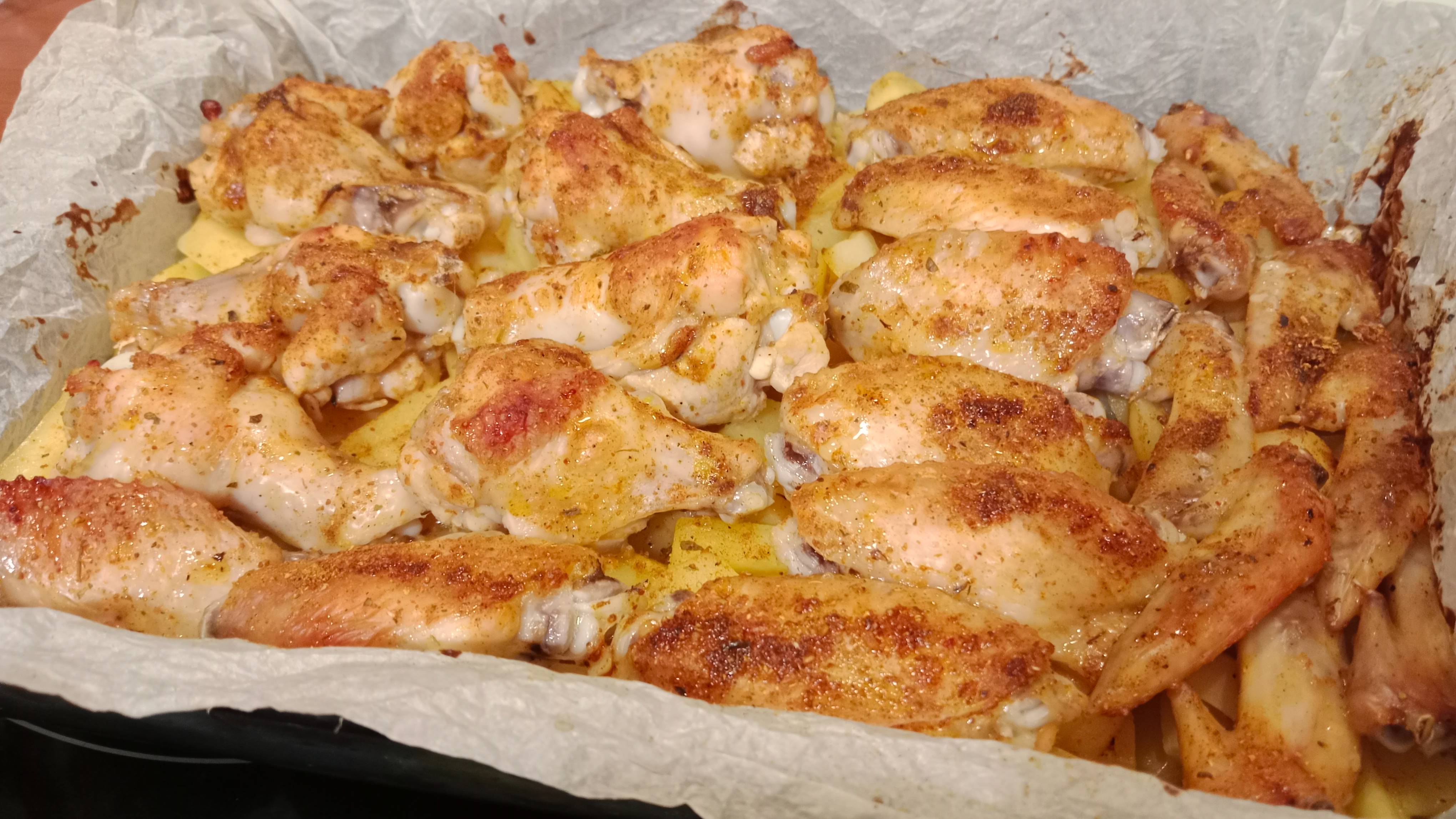 Для приготовления случайным образом использованы продукты, имеющие сокращение "КЦ" в своём описании: - Мясо цыплят-бройлеров "Крыло целое" (= КЦ), изготовленное елецким АО "КЦ" (тоже = КЦ), - Картофель замороженный "Красная цена" (и он тоже = КЦ).