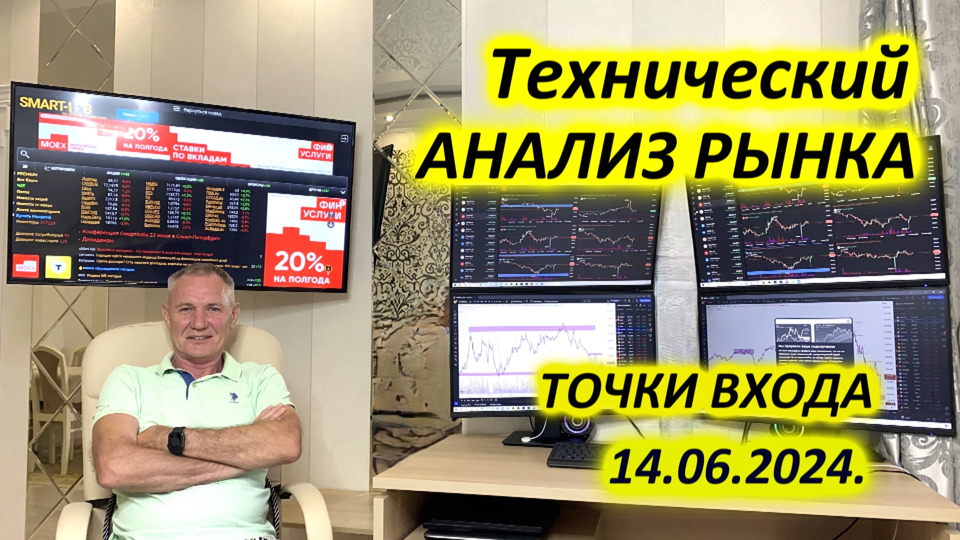 Ежедневно в утреннем обзоре рынка показываю точки входа и выхода из позиции, объясняю простым и понятным языком, при каких сценариях сегодня буду принимать то или иное торговое решение на разных активах. #профессиональный_трейдер #обучение_трейдингу ОБУЧЕНИЕ ТРЕЙДИНГУ: https://clck.ru/3E27UU МОИ КАНАЛЫ: TELEGRAM https://t.me/Vladimir_Sochi_trading. YouTube https://www.youtube.com/channel/UC64BjLLt2UMC9UcHgouJCfQ VK https://vk.com/trading_sochi. OK https://ok.ru/video/c21516196 ДЗЕН https://dzen.ru/id/600c20402686a628426e54d0 Лучшее обучение трейдингу - это наблюдать как профессиональный трейдер принимает торговое решение на покупку или продажу инструмента в реальном времени. Это очень серьёзно прокачивает Ваше понимание основ трейдинга. Ежедневный обзор рынка 10:00-10:30 MCK. Обучение трейдингу с нуля. Акции, фьючерсы, криптовалюты, облигации, опционы, Российский и Американский рынки. Срочный рынок, валютный рынок, рынок криптовалюты.