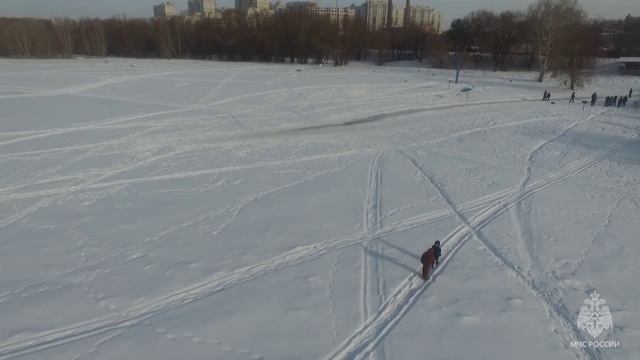 / Видео от 27 февраля 2019 г. / Омичи ничего не боятся, переходя по льду Иртыш. Река скрывает стоки и передвижение по льду становится смертельно опасным!