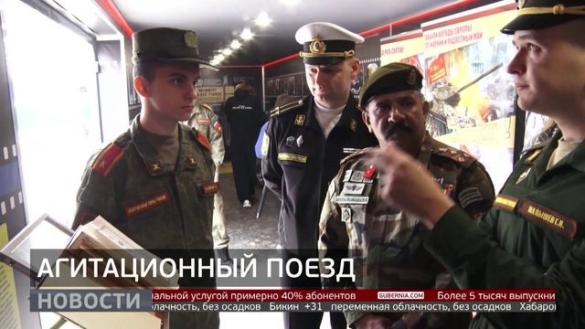 Поезд-музей прибыл на станцию Хабаровск-1. В его вагонах собраны экспонаты, посвящённые Великой Отечественной войне и современному вооружению. Агитационный поезд — совместный проект Минобороны и Российских железных дорог, до этого он останавливался в 38 городах нашей страны.