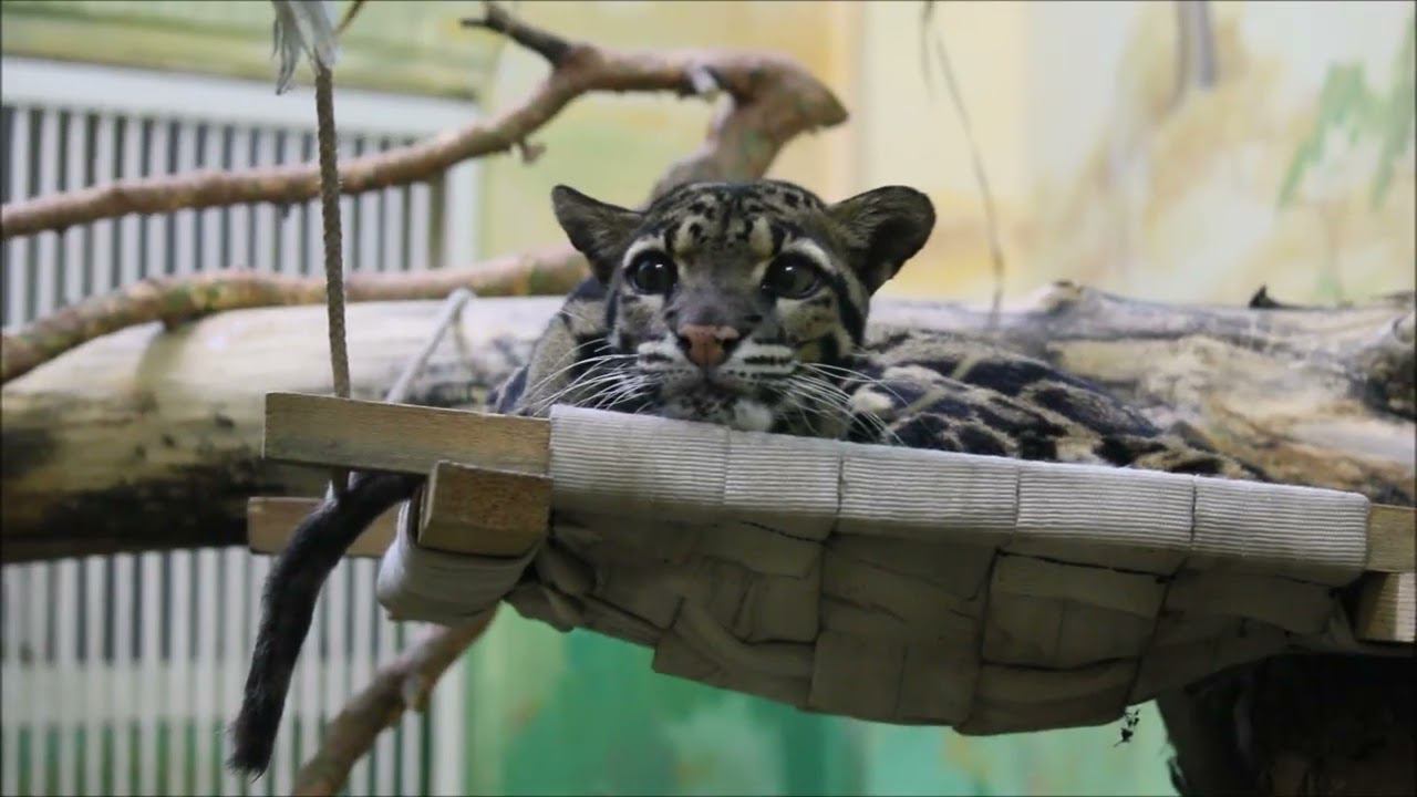 Дымчатый леопард Яви (самка) отдыхает на гамаке 23.11.2023