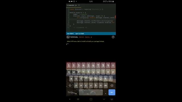 Hey guys, Welcome back to new video of Mr. warriyo. In this video i will be telling how to make a SlowMode Command for your discord.js Bot The code given in this video Supports v12 of Discord.js It may not work in other versions of Discord.js We have used Astro App Node.js For making this video you can watch our whole Playlists of discord.js bot making if you haven't Having error? Join our Discord Server we will help you there Links → Astro App Download → https://play.google.com/store/apps/details?id=com.astrosohu Discord Server → https://discord.gg/pnYKx8Ch4F Subscribe to our channel → https://youtube.com/c/MrWarriyo Watch our Discord.js Playlist → https://youtube.com/playlist?list=PLDtlX6xsAc_9YrPuOoyIg8hwbISh9zYHb Get our github repostery → https://github.com/Mr-warriyo/Mr-warriyo-discord.js ———————————————————————————————— Thank you guys for watching this video, You can comment your suggestion Subscribe to our channel Like the video And share it with your coder friends This was Mr. Warriyo signing out! ———————————————————————————————— Timeline → Topic:(0:00) Intro:(0:18) Slowmode Command:(0:28) Outro:(09:50)
