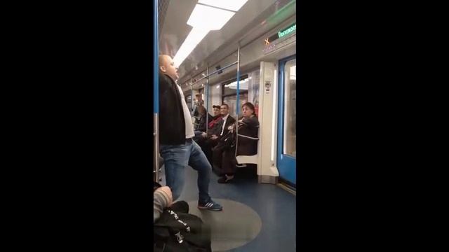 Москва. Снято автором после матча "Спартак" — "Урал". Фанат фк Спартак, повёл себя неадекватно в метро. #идиот #пьяный #наркотическое #неадекват